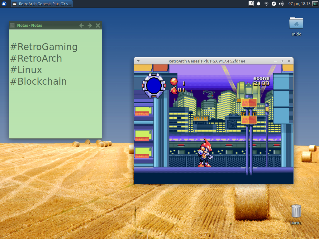 Para jogar eu utilizo o emulador RetroArch num PC com o sistema operacional Linux Xubuntu.