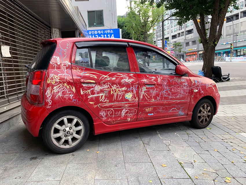 하여튼 이 앞에는 낙서로 가득한 모닝 한 대가 오래 전부터 세워져 있다.