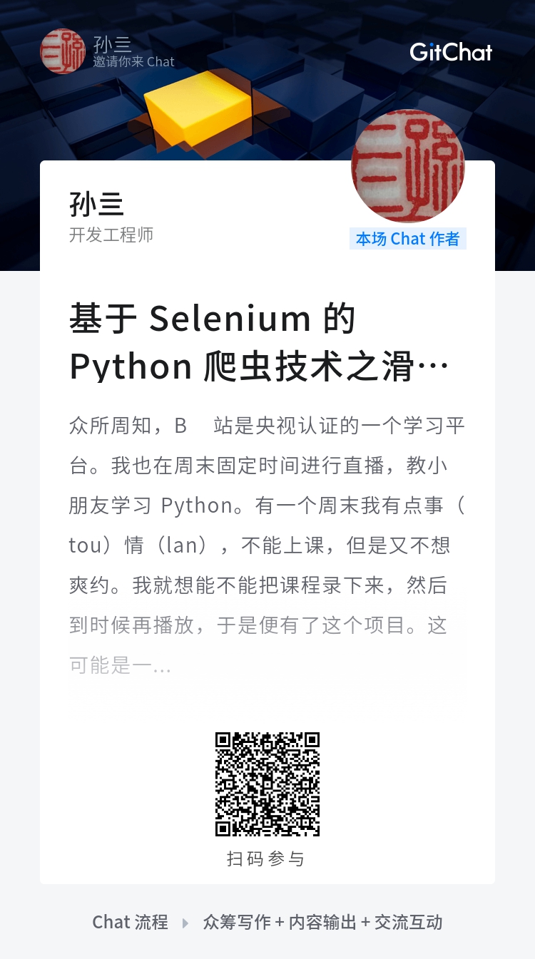 想知道我是怎么实现的吗?邀请你来看看我在GitChat的分享:
