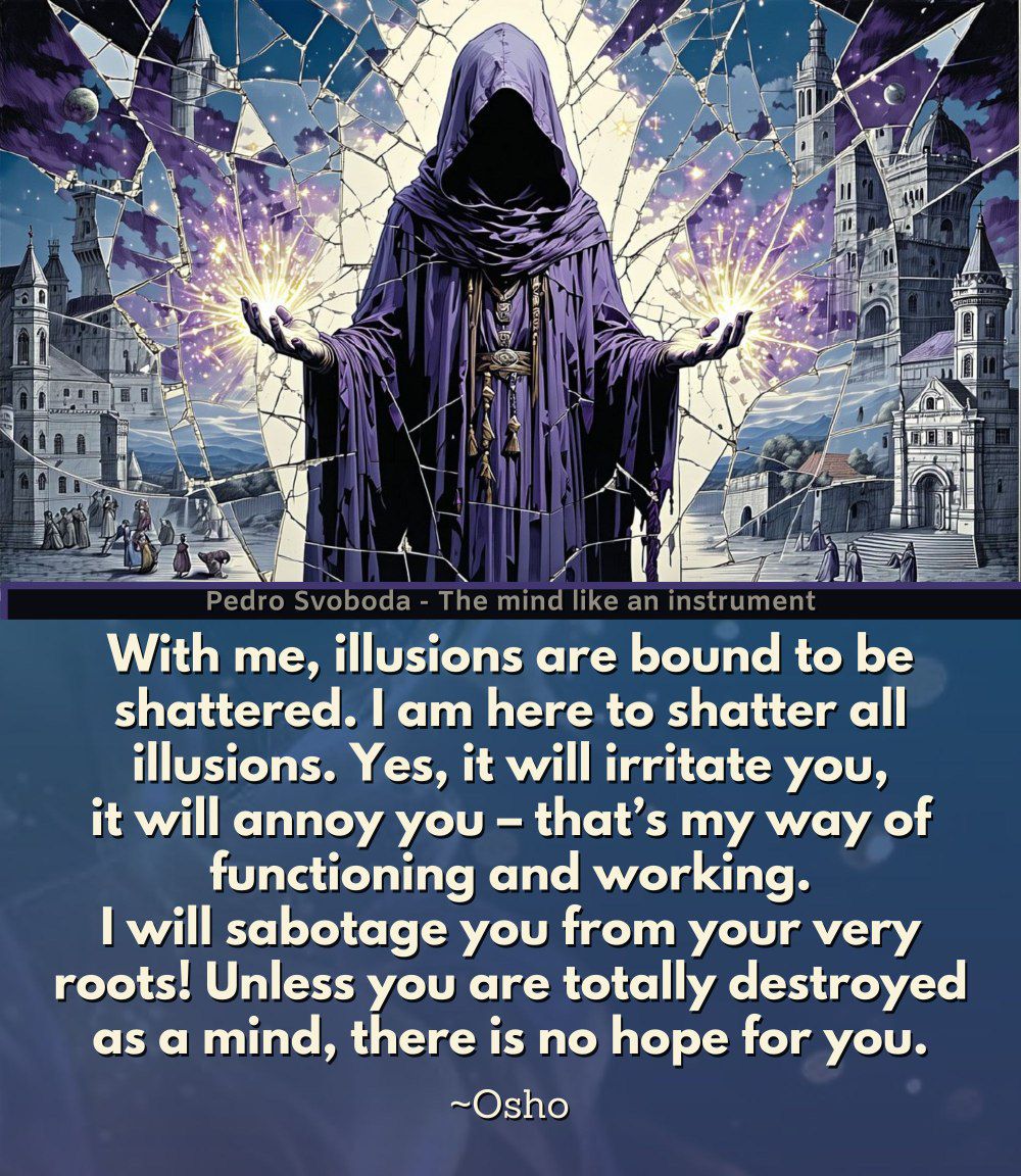 With me, illusions are bound to be shattered. I am here to shatter all illusions. Yes, it will irritate you, it will annoy you – that’s my way of functioning and working. I will sabotage you from your very roots! Unless you are totally destroyed as a mind, there is no hope for you.