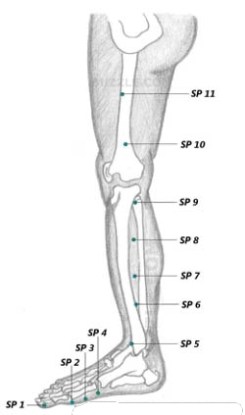 SP-6 is located about 2 finger widths above the ankle on the inside of the leg. You can see approximately the correct area from the chart above. Now let us take a deeper look at this pressure point.