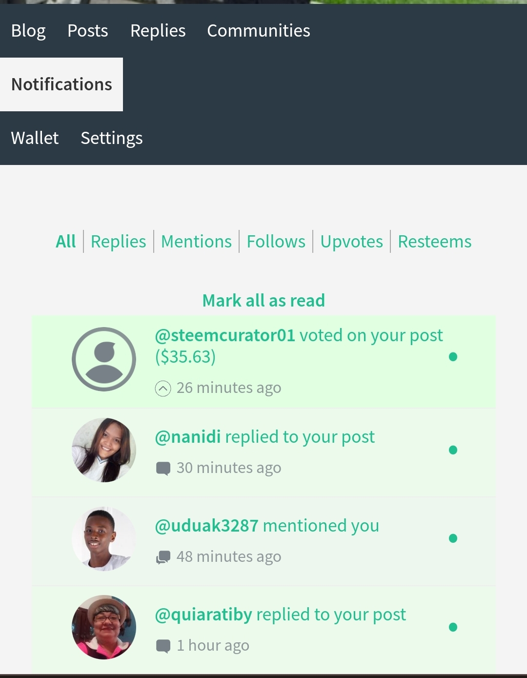| Screenshot of my posts and notification bar | ![]() |