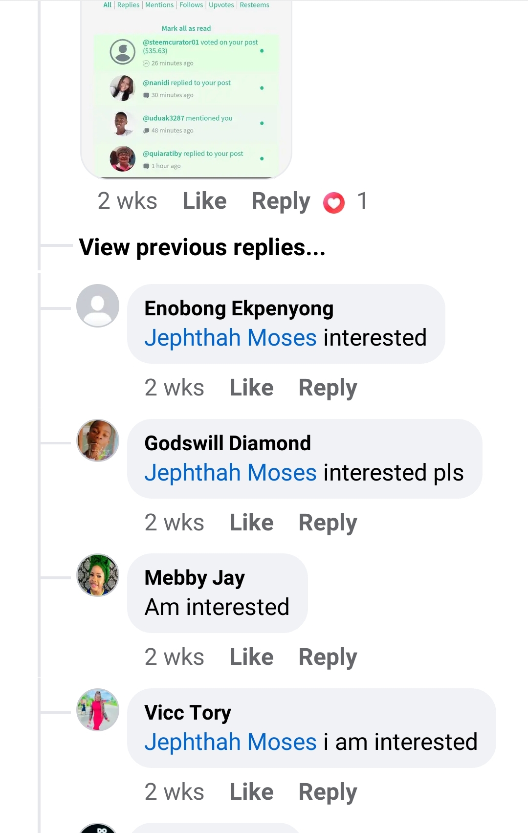 Results have shown that my promotion on other social medias like Facebook and WhatsApp are effective. I've signed up and mentored Over 30 users on this platform from WhatsApp and Facebook promotion. These are some of my posts that makes this evident.