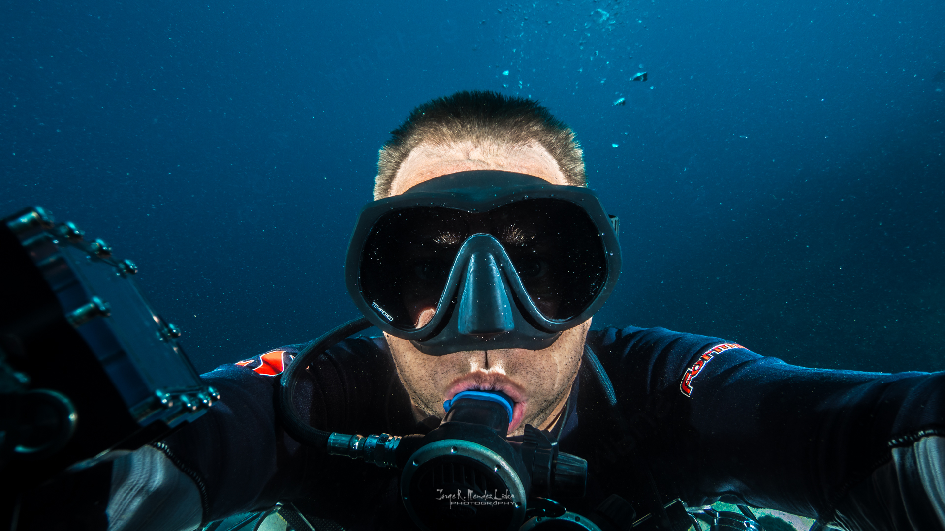 And the right side is a selfie I made doing the other two things I cannot live without and is scuba diving and doing underwater photography.