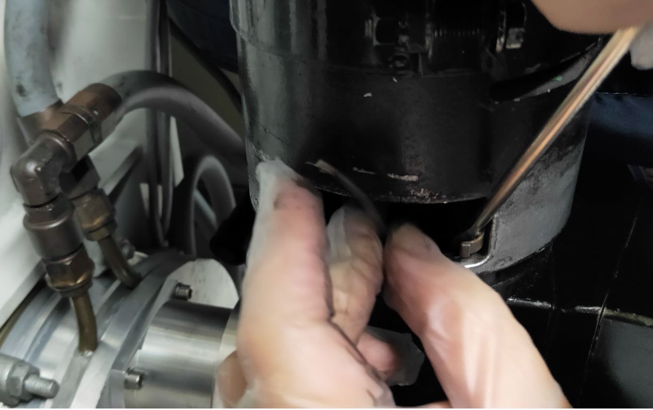 Then at the external part of the motor, loosen the locking screw and move to get the carbon brush out.