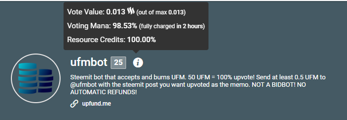 Before you buy an upvote you should check @ufmbot's current vote power. If vote power is low, you should wait to buy your upvote for increased rewards.