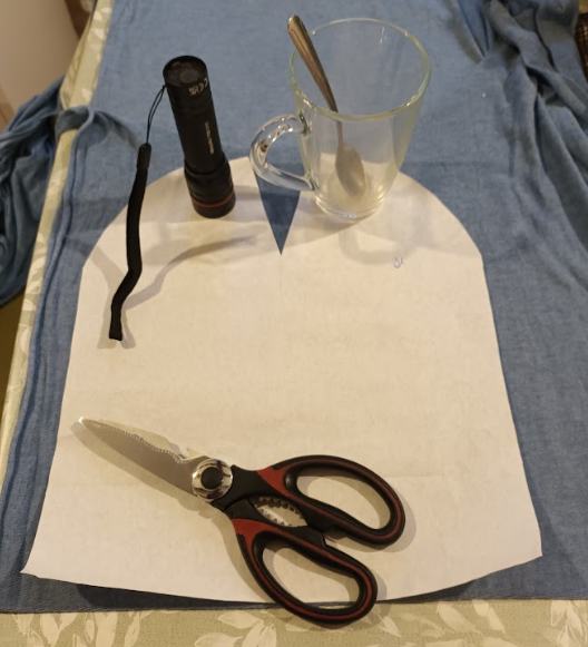 In the New Year I will try and find some proper weights for when I put a paper pattern piece on top of fabric. Using my torch, empty cup and scissors worked to some extent but the photo looks a bit abstract.