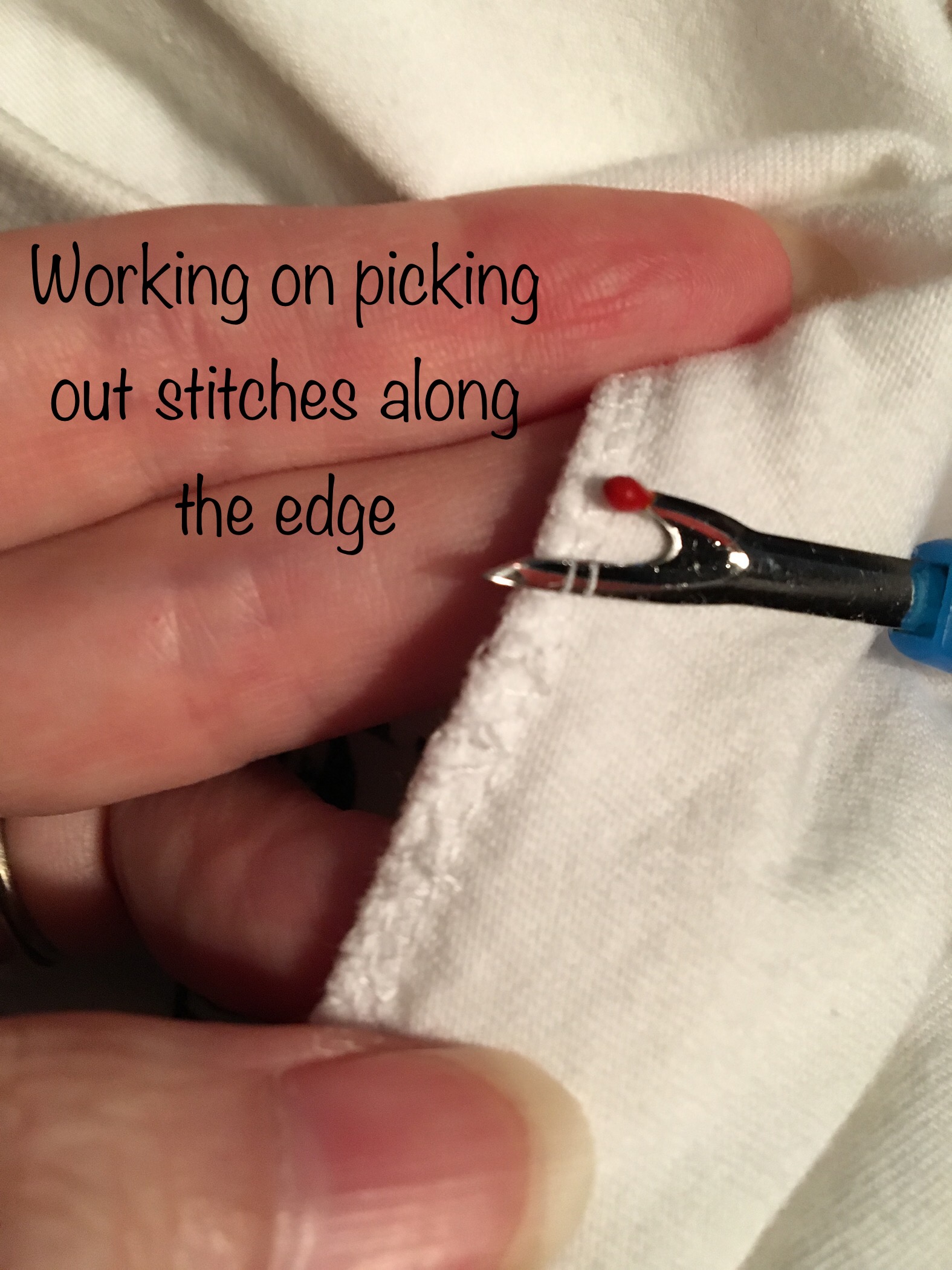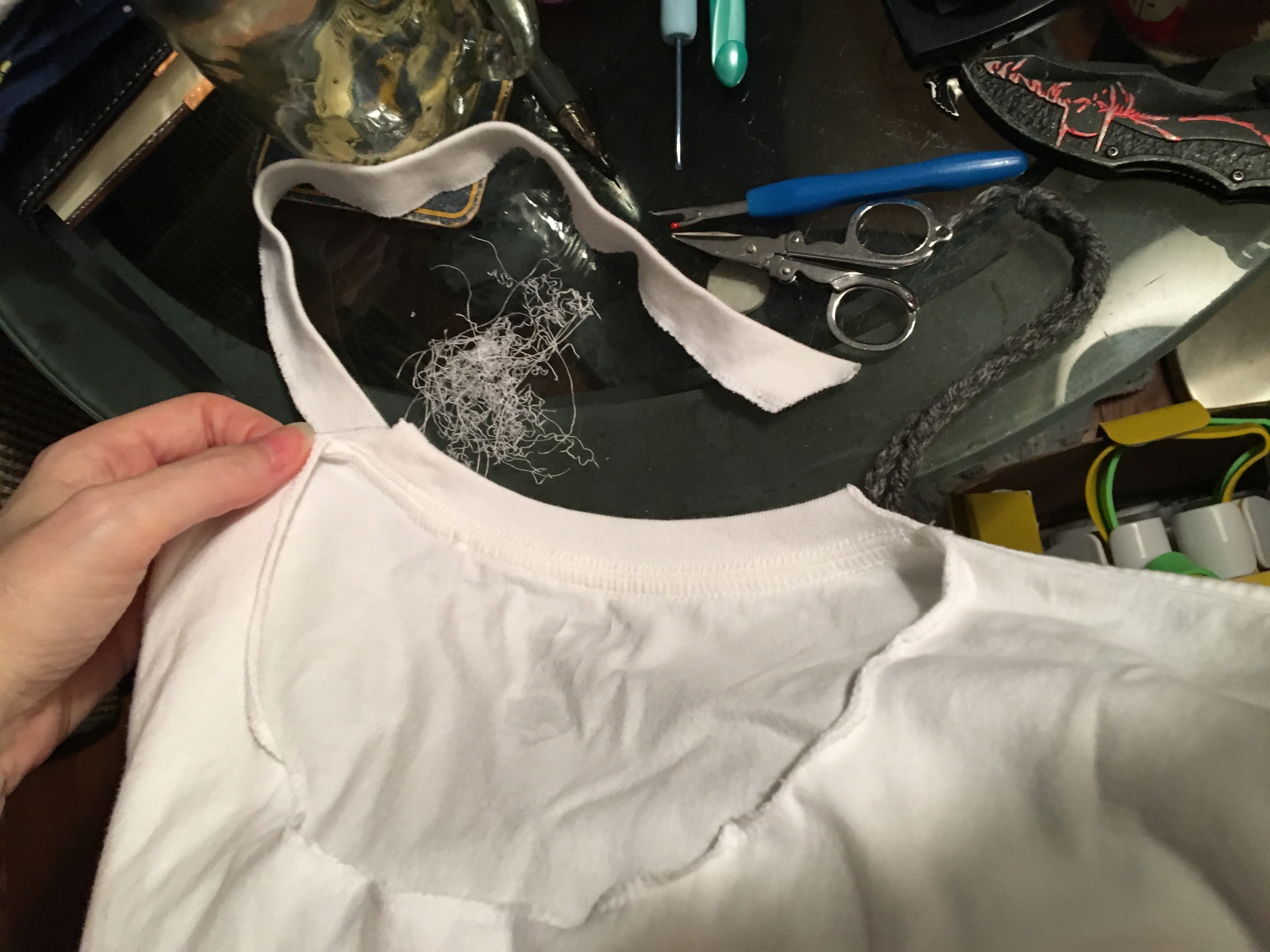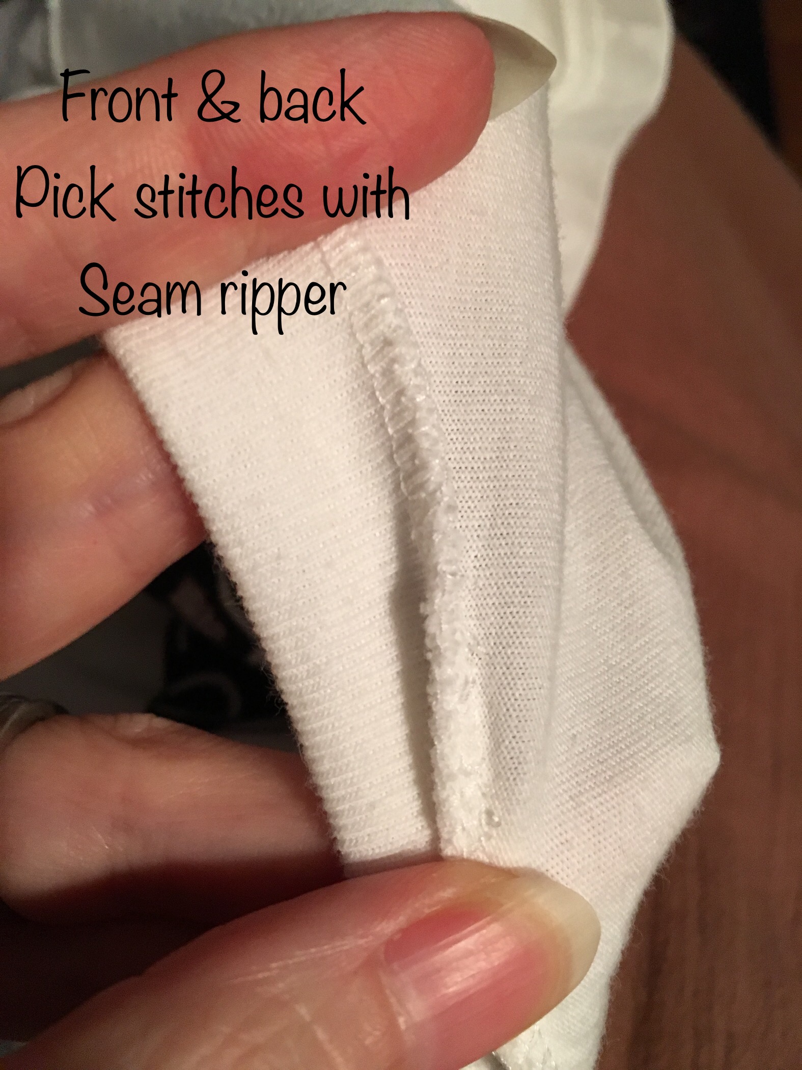 Relaxing your teesoceanmoon (50)in #sewing • 7 years ago Tight tee at the neck? Here are two ways to make it roomy. Cut with scissors and serge the edge to give it color. Pick those stitches! 🧵 Seam ripper Pull that thread 🧵 ![5D3B5560-9722-440B-B9AC-70E8C414028E.jpeg] Making progress Front Back #needlework #upcycle