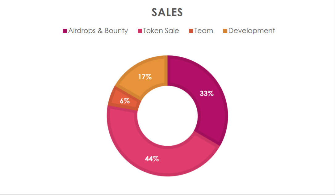 Airdrops and bounty: 33% Tokens