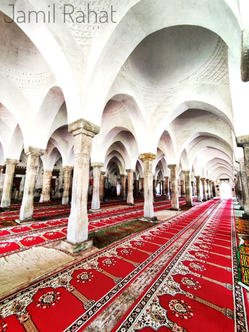 এ মসজিদের ভেতরে ৬০টি স্তম্ভ বা পিলার আছে, স্থানীয় ভাষায় যা খাম্বা নামে পরিচিত ছিল। প্রতি সারিতে ১০টি করে উত্তর থেকে দক্ষিণে ছয়টি সারিতে এই স্তম্ভগুলো দাঁড়ানো। প্রতিটি স্তম্ভই পাথর কেটে বানানো, শুধু পাঁচটি স্তম্ভ বাইরে থেকে ইট দিয়ে ঢেকে দেওয়া। এই ৬০টি স্তম্ভ এবং চারপাশের দেওয়ালের ওপর তৈরি করা হয়েছে গম্বুজ।