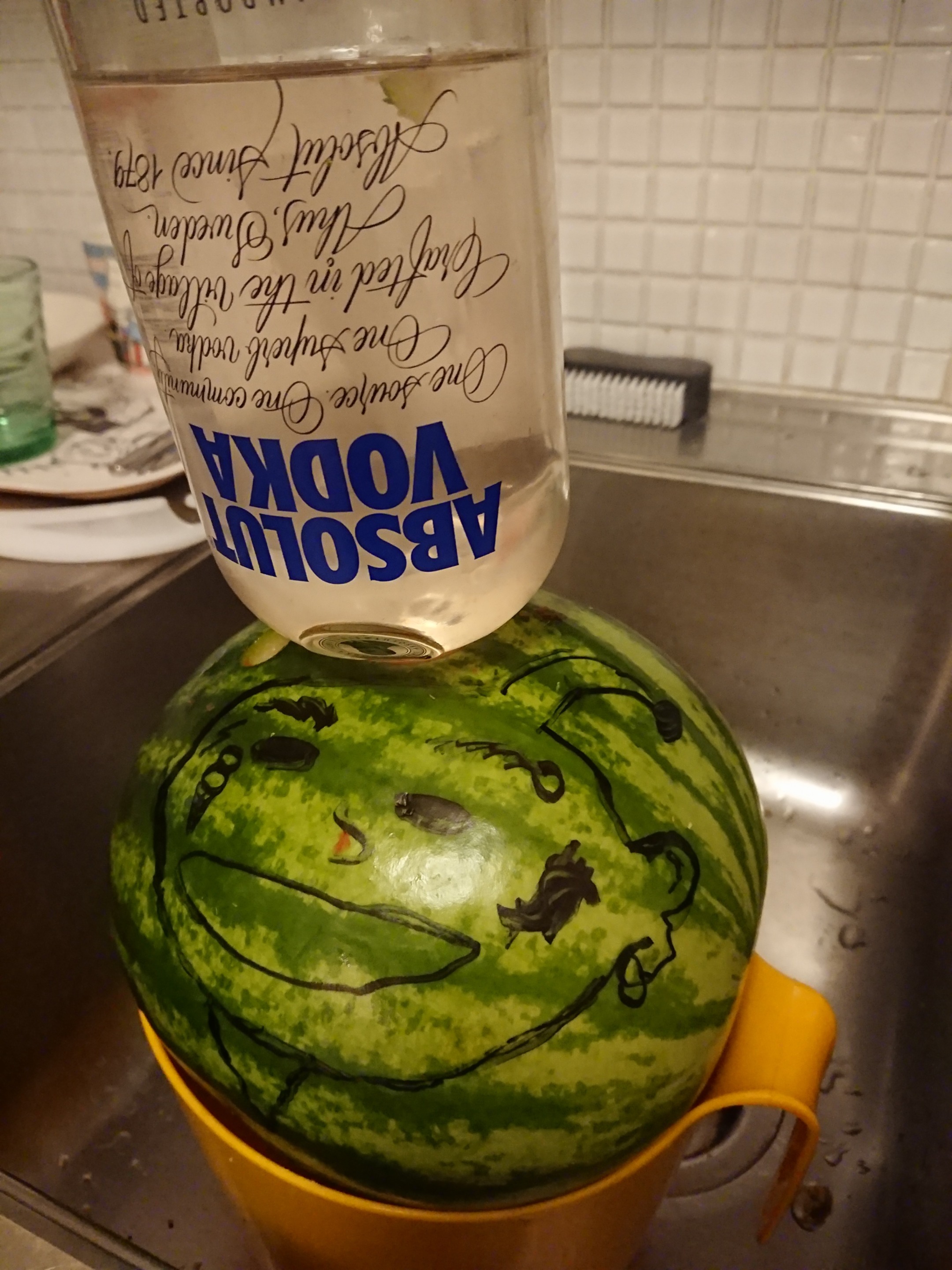 It is a very good combination watermelon and a bottle of vodka,