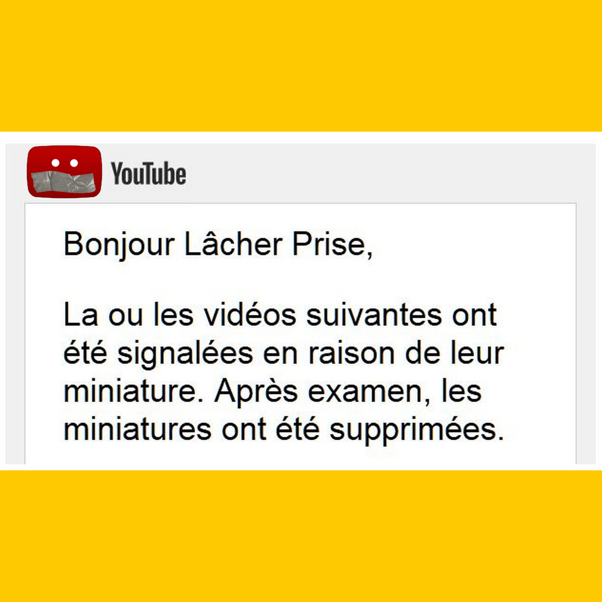 Vidéos signalées en raison de leur miniature Après examen supprimées