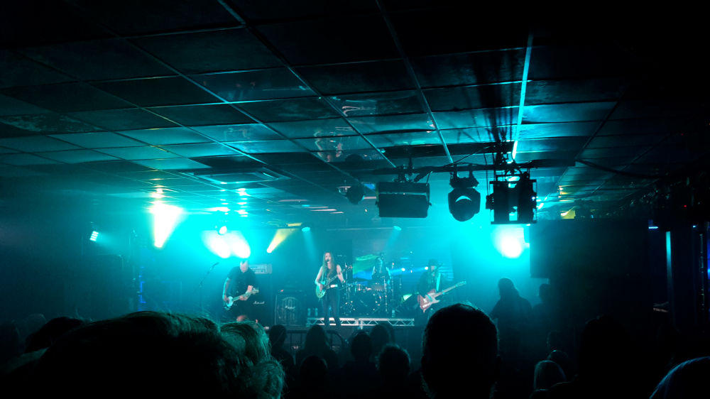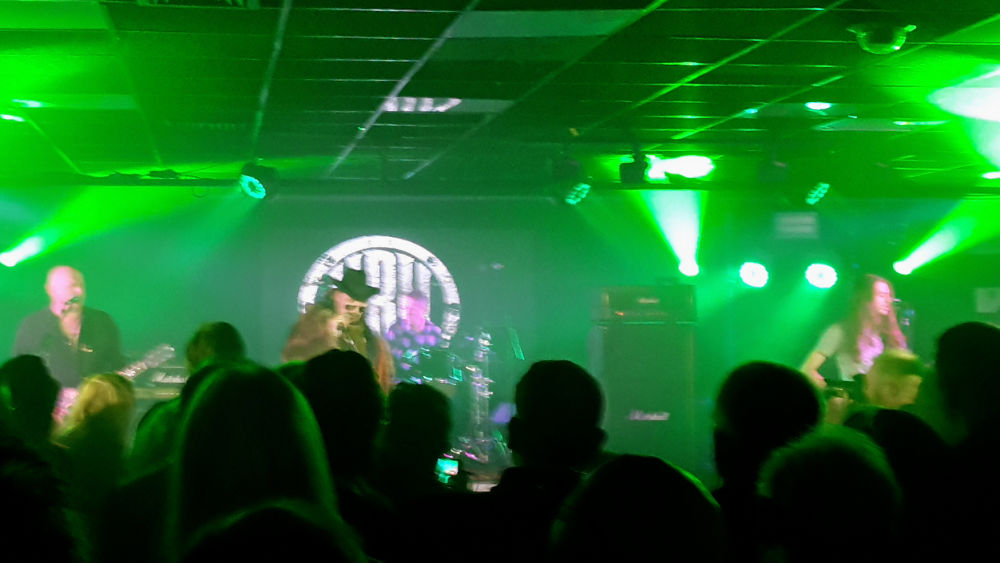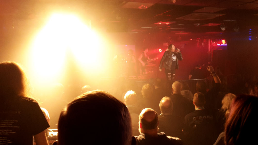 Cloven Hoof were the best band of the evening. They’ve been struggling along since the NWOBHM in the early 80s but I’d never heard them before. What we got was AC/DC meets Iron Maiden, but without the songwriting skills. The singer sounds a lot like Bruce Dickinson and the lead guitarist, who can’t have been born when the band was formed, plays like Angus Young (albeit while grinning through Alfred E Newman’s teeth). You can place the songs on a continuum where the early stuff is very AC/DC and the latter very Maiden. Bloody good stuff and I left with a signed LP (although the beer may have helped).