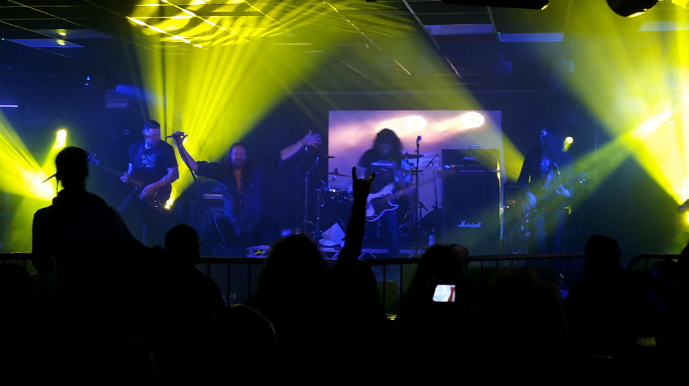 The new location has obvious logistical improvements on North Wales - more accommodation including 2-person caravans, more and better dining options and it’s convenient to ports to get to Europe. However, the main venue itself is not very good. The ceiling’s too low. Think of your average concert venue - a big room roughly the shape of a shoe box with a stage at one end. Quite high ceilings, so there’s plenty of space for speakers, screens, what-have-you. Here the room was square with ceilings no higher than in an office. In Prestatyn, Overkill had had a line of Marshall stacks with room for a drum kit (and drummer) sat on top of them. All on a stage about waist height. In Yarmouth, the stage was about knee height and while there was room for a Marshall stack, you’d be lucky to put a drum on top of it before scraping the ceiling. When Michael Monroe stood on the crowd barrier at the front of the stage, he could use the ceiling to balance himself. Fine for a pub gig, but not a “festival”. So this is the story of how over three days I gave up on the main stage and moved to the second stage where I’m sure the ceiling was a teeny bit higher, and certainly the music was.