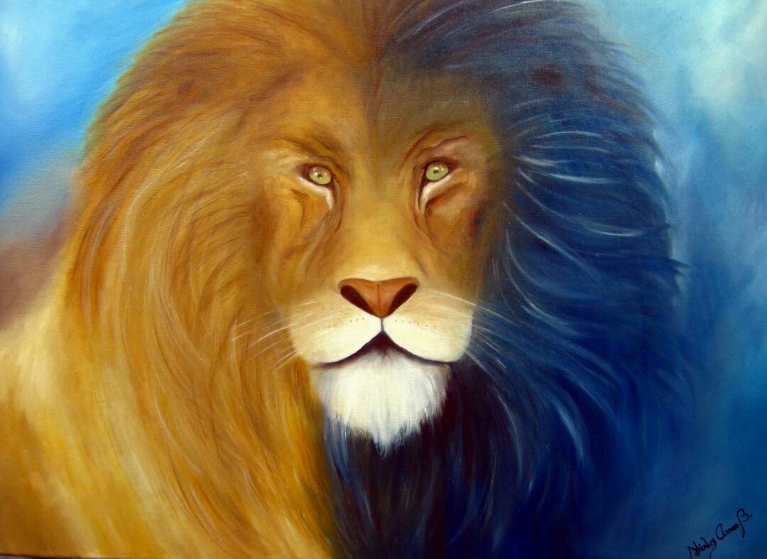 Liontari forma parte de mi experiencia pictórica con animales. He pintado en -primer plano- garzas (acuarela), guacamayas (óleo), caballos (acuarela), lechuzas (creyón), mariposas (óleo y esmalte) y este león que hoy les presento (también en óleo). Sin embargo, mi arte no se especializa en la fauna. Creo, no obstante, que en algún momento casi todos los artistas plásticos incluyen animales en sus obras, bien sea en primer o segundo plano. Es casi inevitable. Y es, asimismo, una experiencia grata; lo ha sido para mí. No sólo representa un desafío desde el punto de vista artístico, también constituye una bonita y excelente oportunidad de acercarnos a la naturaleza, incluso de forma remota (no me imagino pintando a Liontari con ese monumental león posando en vivo para mí) .