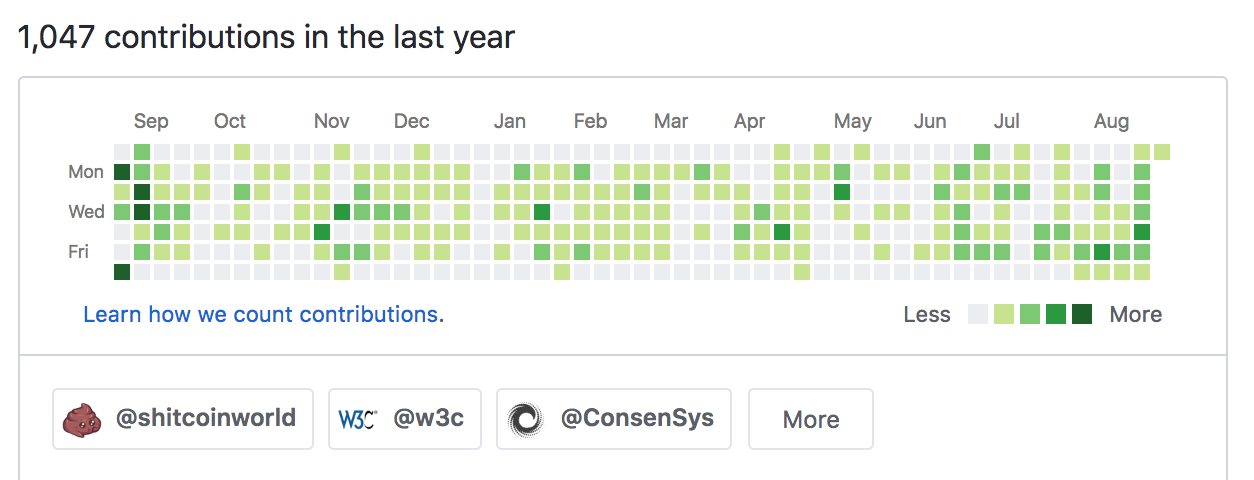 Life according to GitHubbuhrmi (25)in #shitcoins • 8 years ago According to Github, my life this past year was mostly shitcoins, w3c and consensys. What's your life? I hope you have an awesome day.