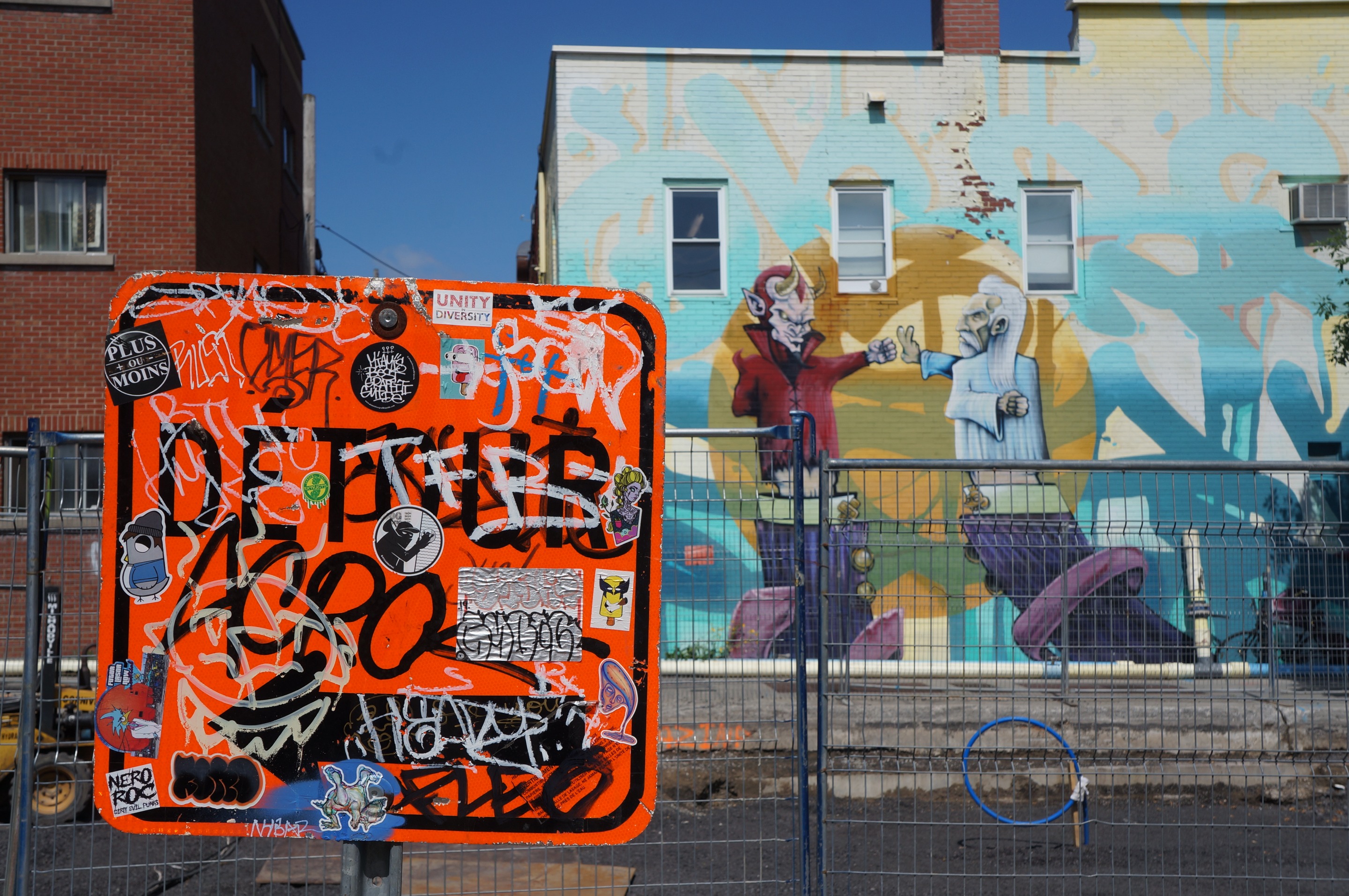 After one week of vacation, back to business with a short selection of stickers on road sign just in front of a stunning mural done by Alex Scanner aka Scan...