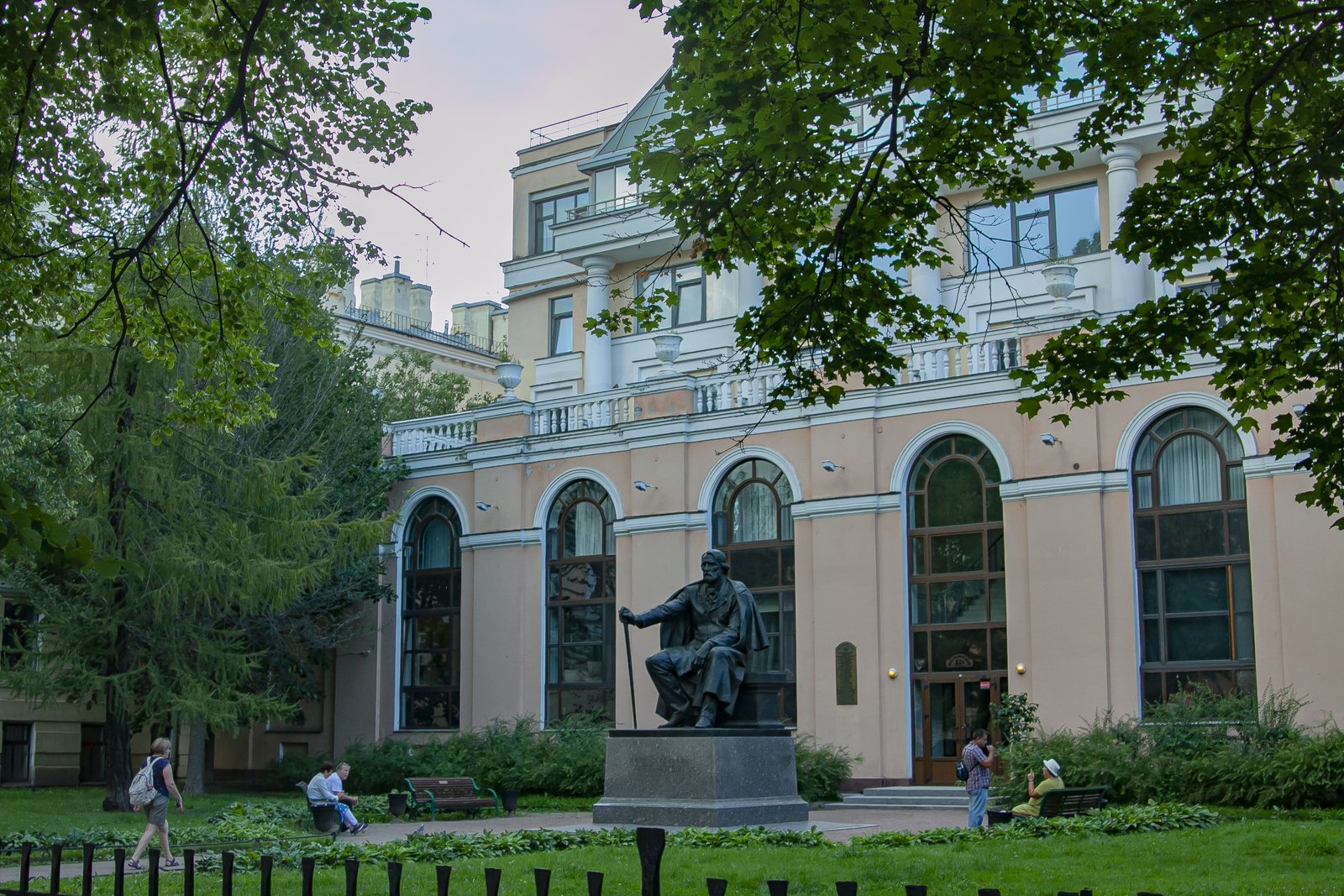 These four monuments - Quarenghi, Rossi, Rinaldi and Rastrelli - are a tribute to these great architects. If you go out onto Malaya Sadovaya Street from here, you can go straight to the Alexandrinsky Theater, crossing Nevsky Prospekt on the way. Hence, you can't say that just one block away, life is literally boiling, because there are usually few passers-by near the square on Manezhnaya Square.