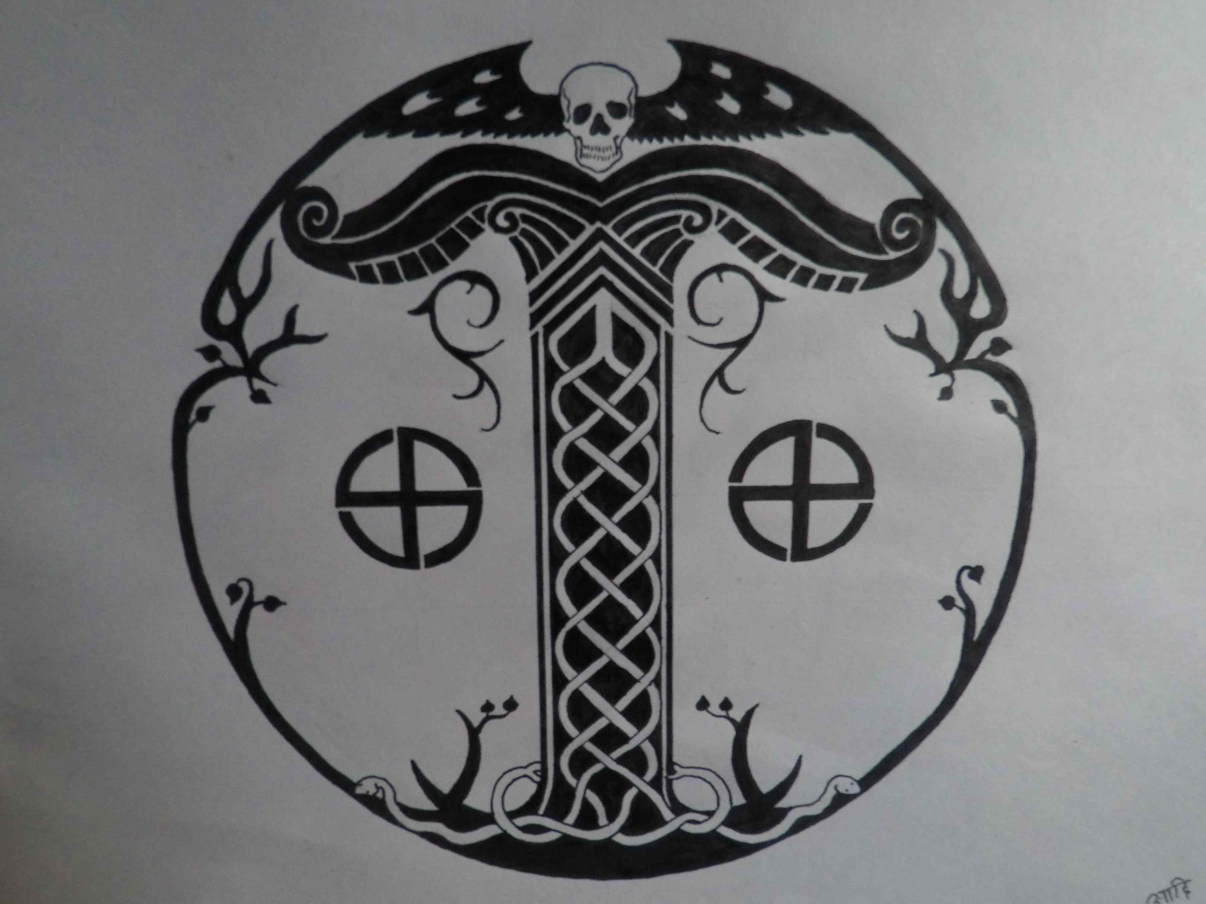 Snakes and skull sigil study.apnitopathshala (27)in #sigil • 8 years ago A lot of research went into creating this work and I learned a lot of new techniques and methods to improve upon my work. This work was finished using a lot of reference material on a half imperial size paper (37.5 - 55 cm) with graphite pencils. #skull #snakes #drawing #logo