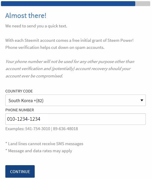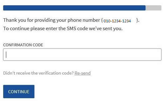 휴대폰에 전송된 인증번호 입력한 후 CONTINUE !