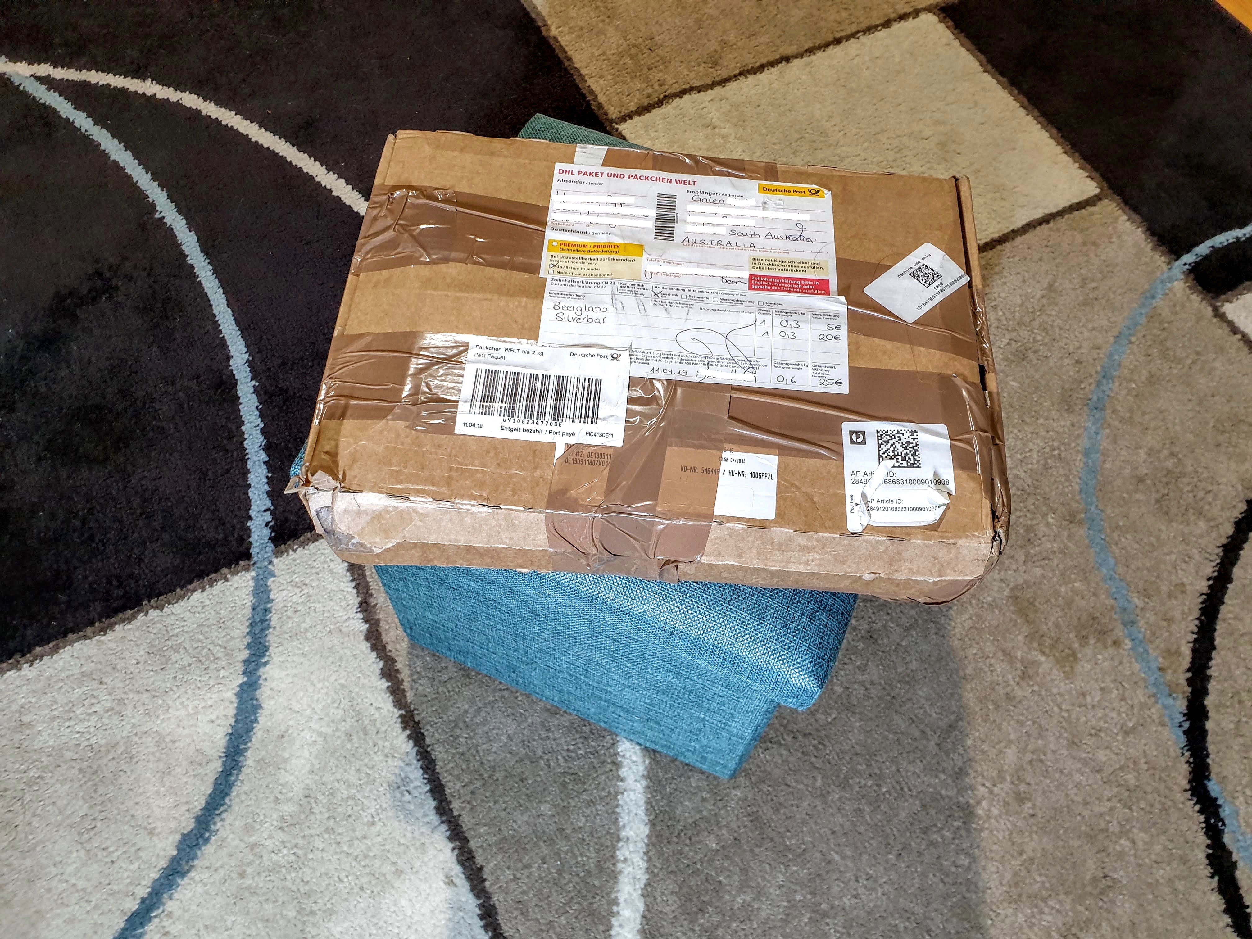 So, thank you for your excellent silver piece and the bonus gift of the beer glass which will, at some point, be filled with the appropriate amber-fluid and hoisted in your honour. (You're American...So, honor) How cool is it that we connected through this platform! Thanks also to @mrsbadger who seems to have done all the hard work...(the posting etc.) Danke sehr. I hope that means thank you, or something close to it.