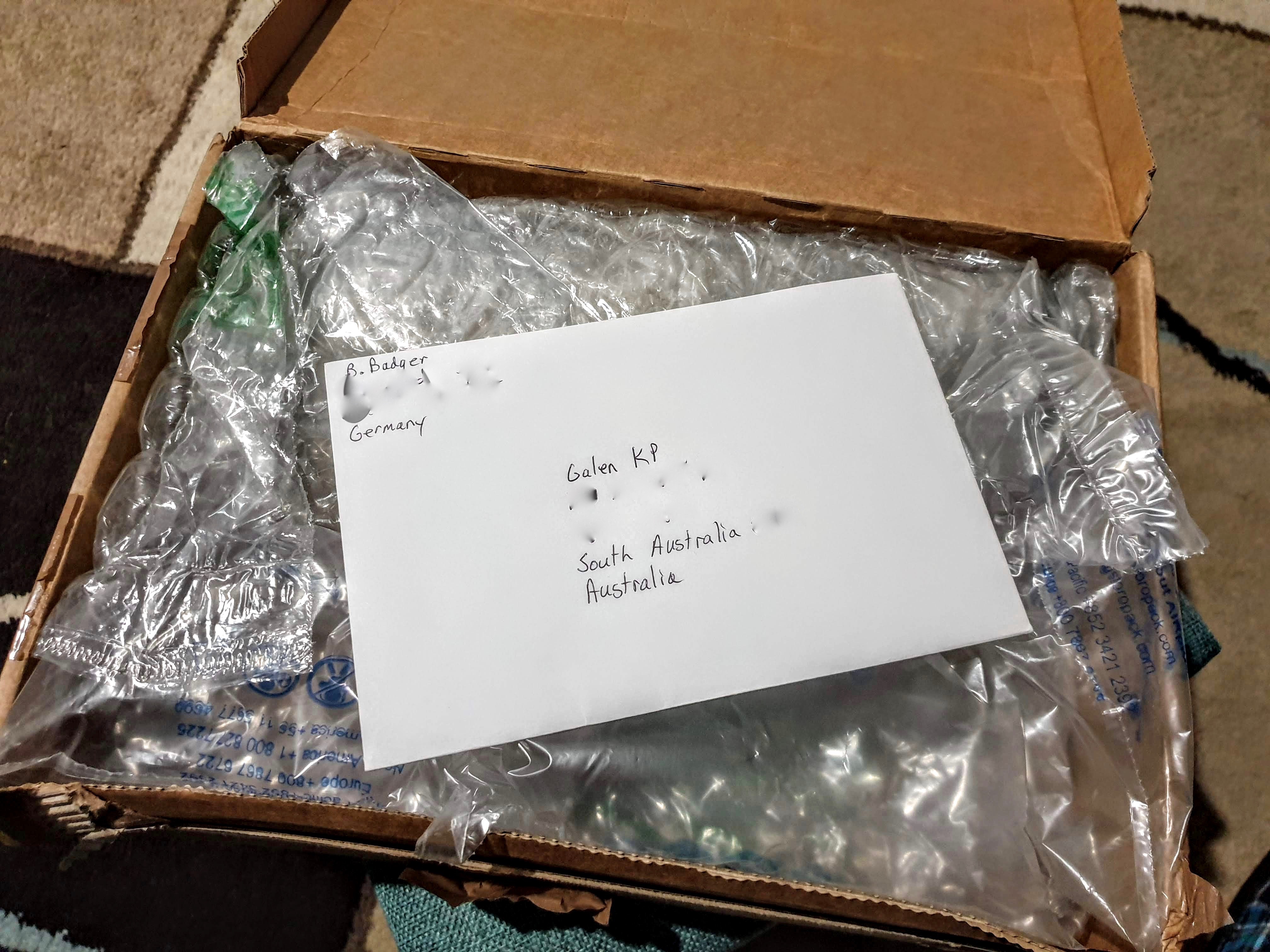 Here's the box...I can now officially say I have received a package from Germany. It arrived in poor shape I have to say. I didn't mind though, because I knew what was inside the somewhat pummelled German box.