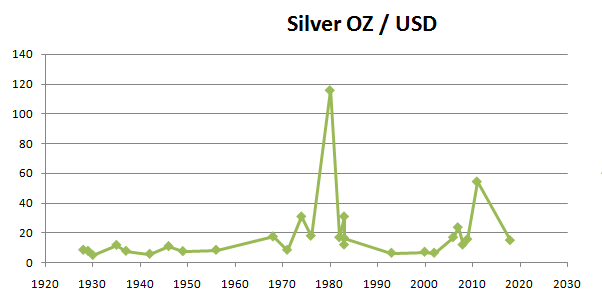 Even in this graph of Silver measured in dollar you can see how undervalued it is. It costs less than in 1918 what you can't see here but the price in dollars was approx. 17$.