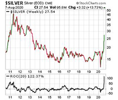 After years of being suppressed below $20/oz, then being forced down to an absurd new low during the lockdown, extreme pressures built. Finally, silver erupted like a geyser.