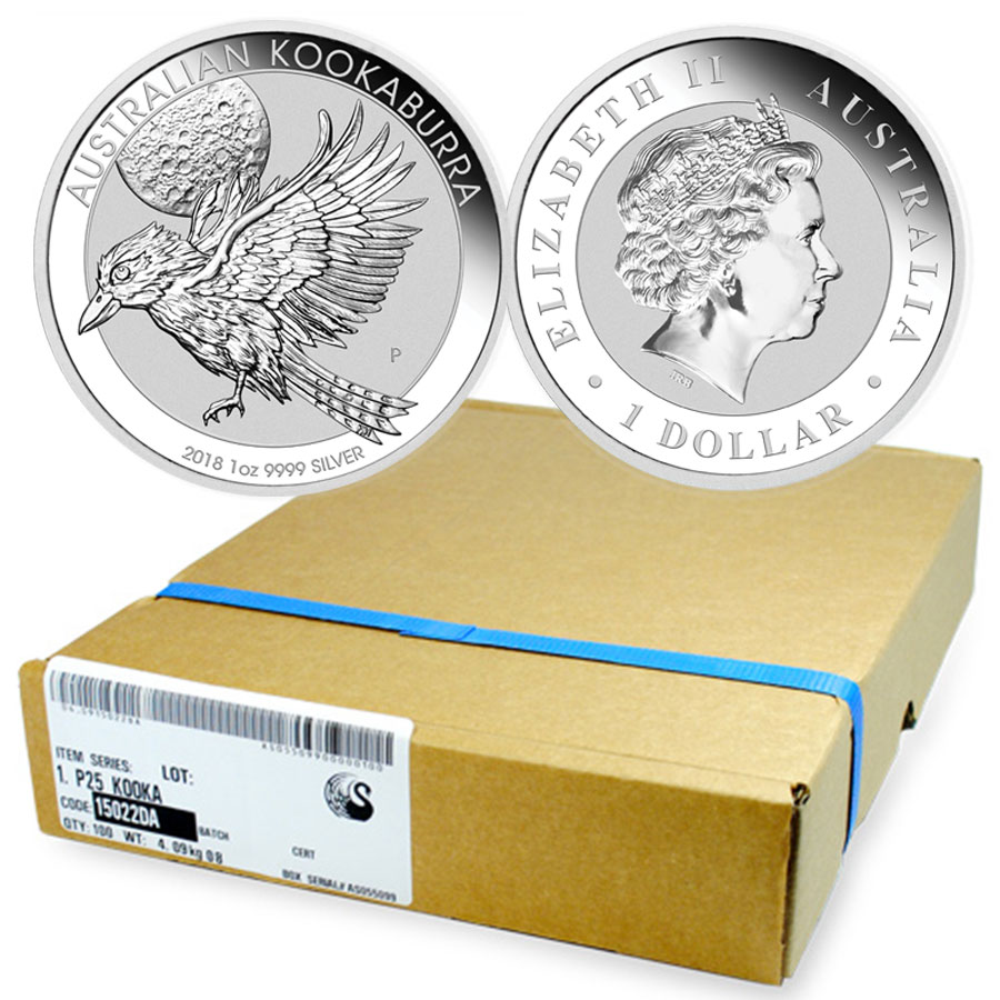 Each individual coin is housed in a sealed plastic capsule to protect the coin from the elements and to stop the silver from tarnishing. The 1oz Silver Kookaburra Coins come in 20 coin shrink wrapped rolls. You are also able to purchase a 100 coin box of Kookaburra Coins that is made up of 5 individual 20 coin rolls.
