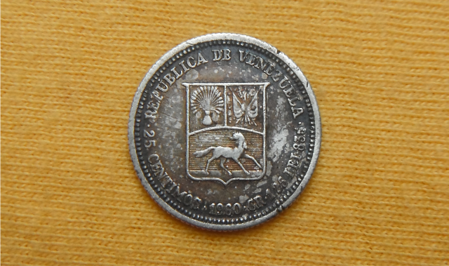 Silver twenty-five centimos coin (1960) - Venezuela.