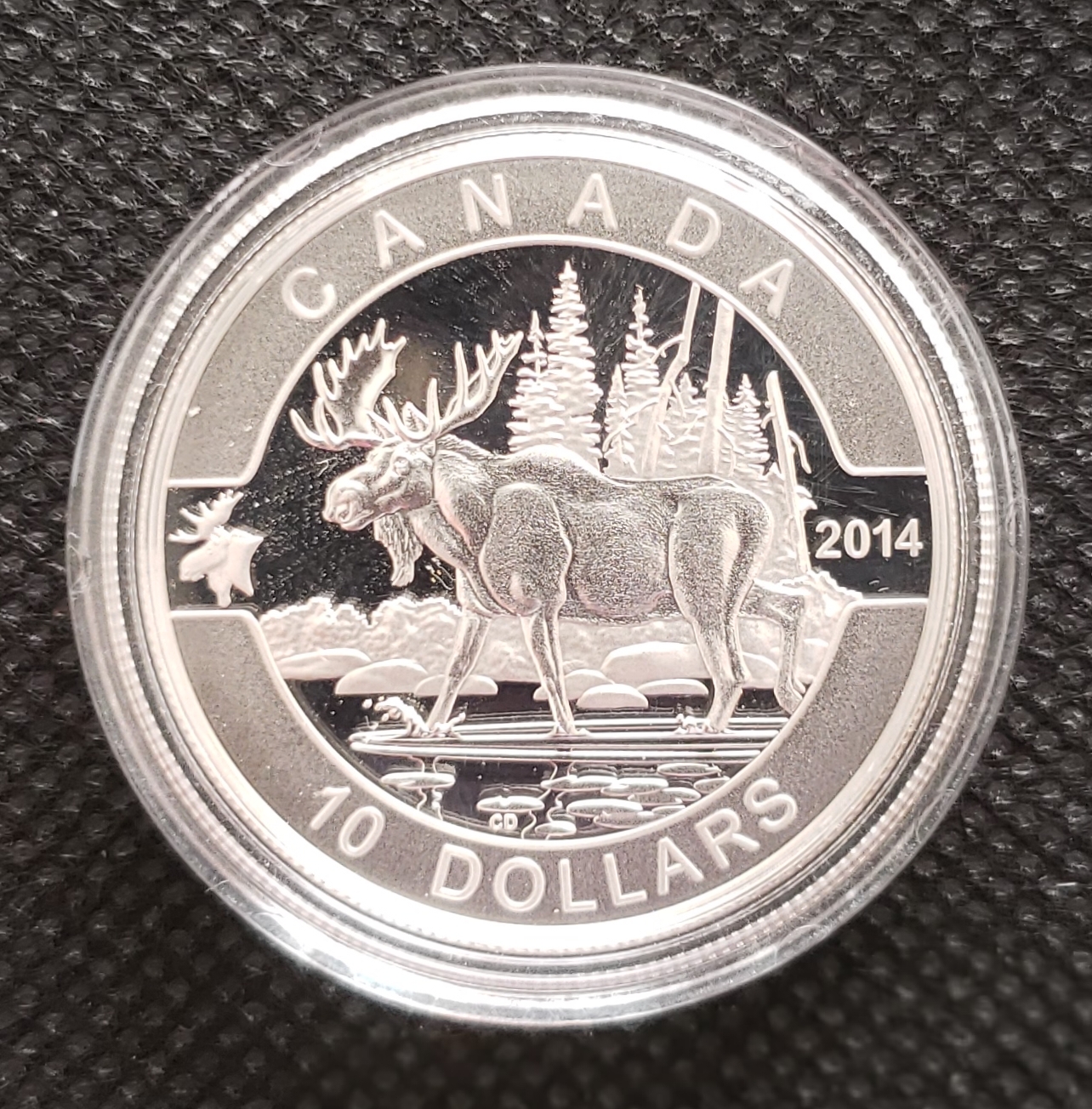 This coin salutes that most Canadian of wildlife symbols, the moose (Alces alces).