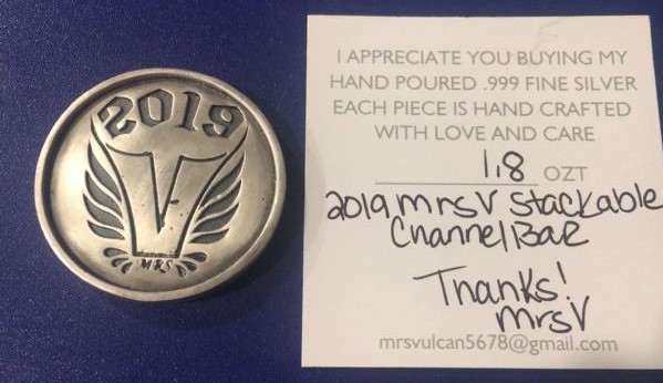 1.8 troy oz, .999 fine silver, cast hand poured by Mrs V