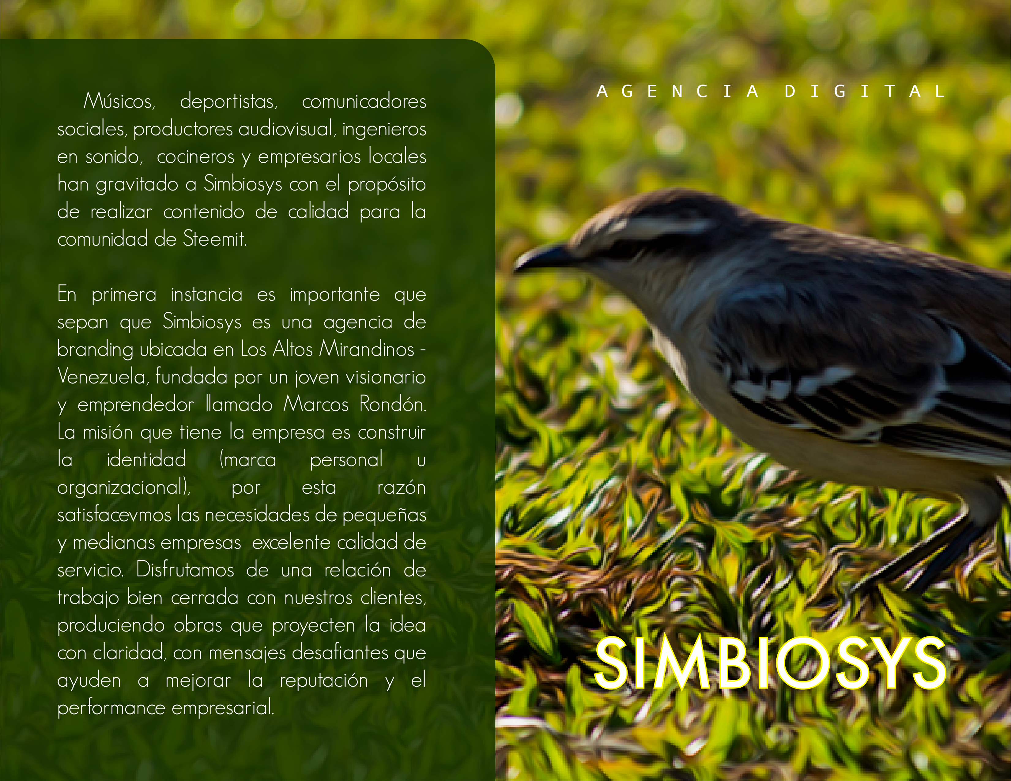 INTROYOURSELF SIMBIOSYS AGENCIA DIGITALsimbiosys (25)in #simbiosys • 8 years ago ! ¡Simbiosys les da la bienvenida a nuestro blog! Director general: Marcos Rondón. Diseñador gráfico: Richard Palacios. Directora de comunicaciones: Génesis Vargas. #fotography #gastronomy #sport #music