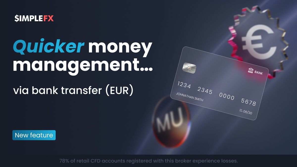We’ve prepared faster deposits and withdrawals for users registered in the MU jurisdiction. From now on, you can easily transfer money to and from your EUR account on the SimpleFX platform. Moreover, each deposit is free!