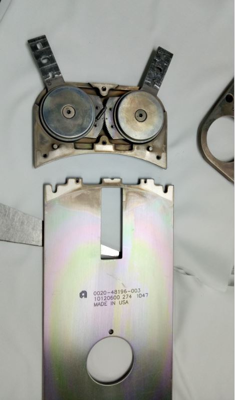 A dismantled robot blade look like this. After taking out the cover, then you see inside there is bearing for movement rotation. And a small spring to latch both gear together.