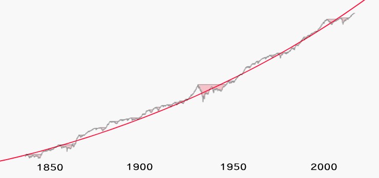 It's fascinating how religiously humanity follows the exponential curve of evolution. Look at the chart above - this is a global market index since 1835. A perfect straight line on the log chart.