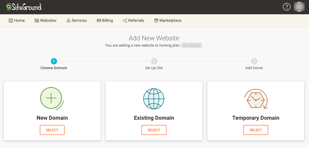 Temporary Domain:使用 SiteGround 提供的免費子網域。