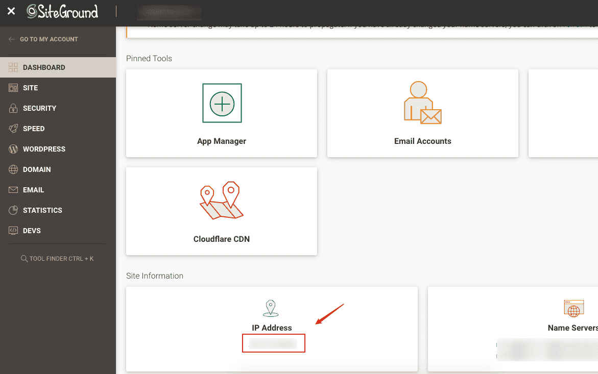 首先,你可以進入 SiteGround > Site Tools > Dashboard,往下拉即可看到主機的 IP Address。