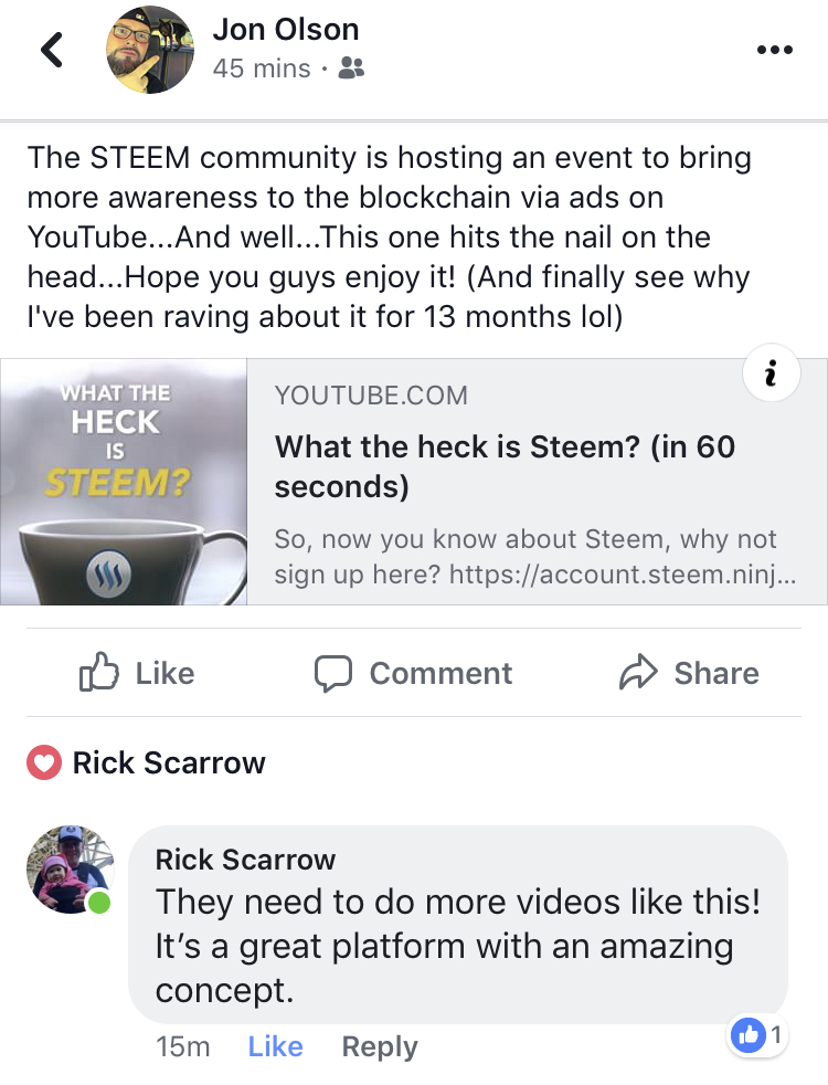 I absolutely love the video and how it compare value Steemit vs Facebook...!!!