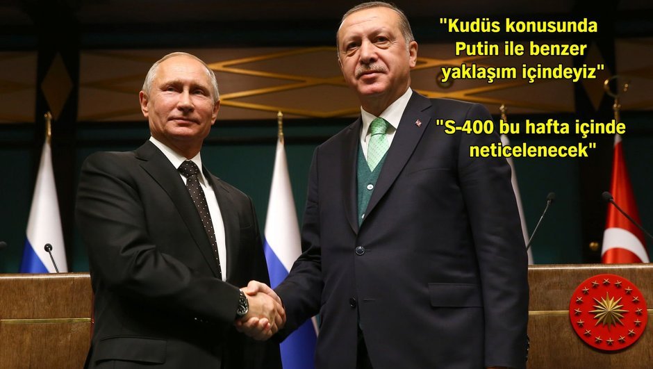 Cumhurbaşkanı Erdoğan, S-400 füze anlaşmasına ilişkin "S-400 konusu ile alakalı ilgili arkadaşlarımız gerekli çalışmayı yapmak suretiyle bu hafta bir araya gelip bu işi neticelendirecektir. Kendilerine başarılar diliyorum" dedi. Rusya Devlet Başkanı Putin ise "Kudüs'ün statüsü İsrail ile Filistin arasında doğrudan temaslarla ele alınmalıdır" ifadesini kullandı.