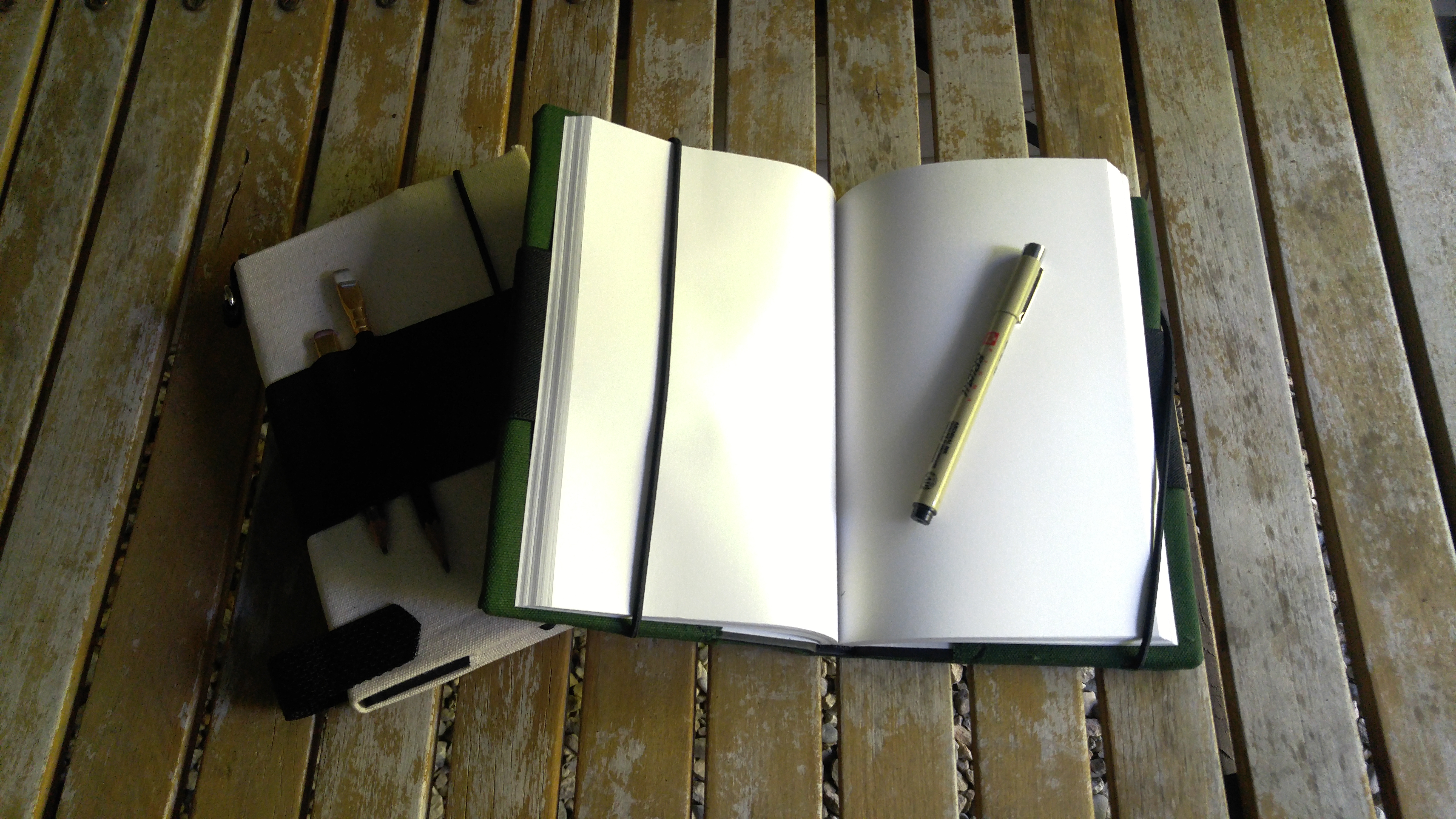 Wanting to own a sketchbook of a reasonable size, one that I could effectively take anywhere and would hold my gear, so I found some rad ladies who helped me learn to use a sewing machine. I now make this thing I call a scribblejacket...
