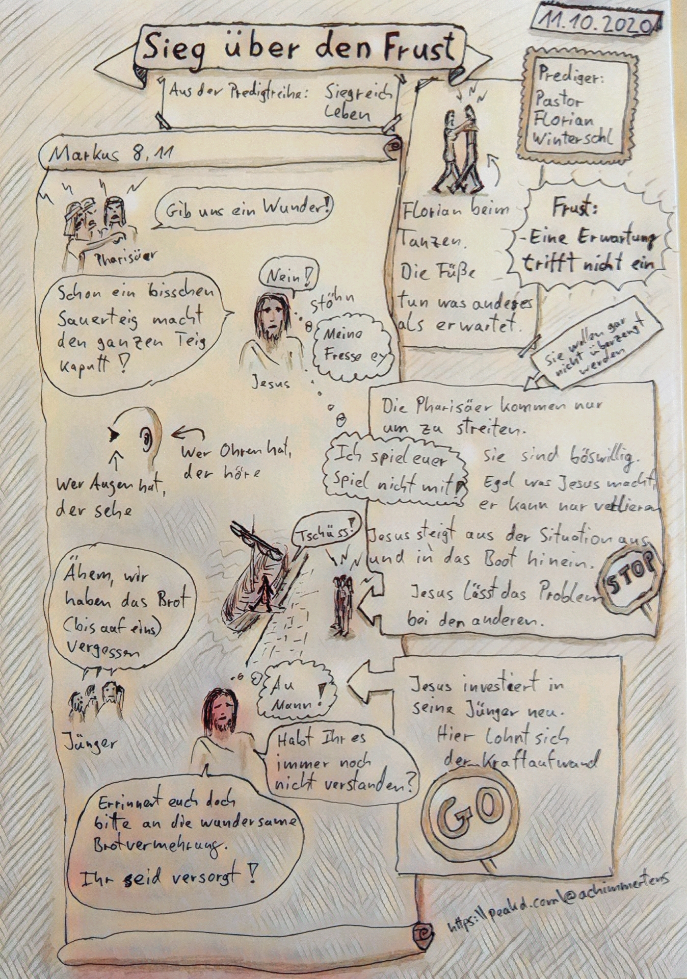 Sketchnotes vom Gottesdienst zum Thema "Sieg über den Frust"