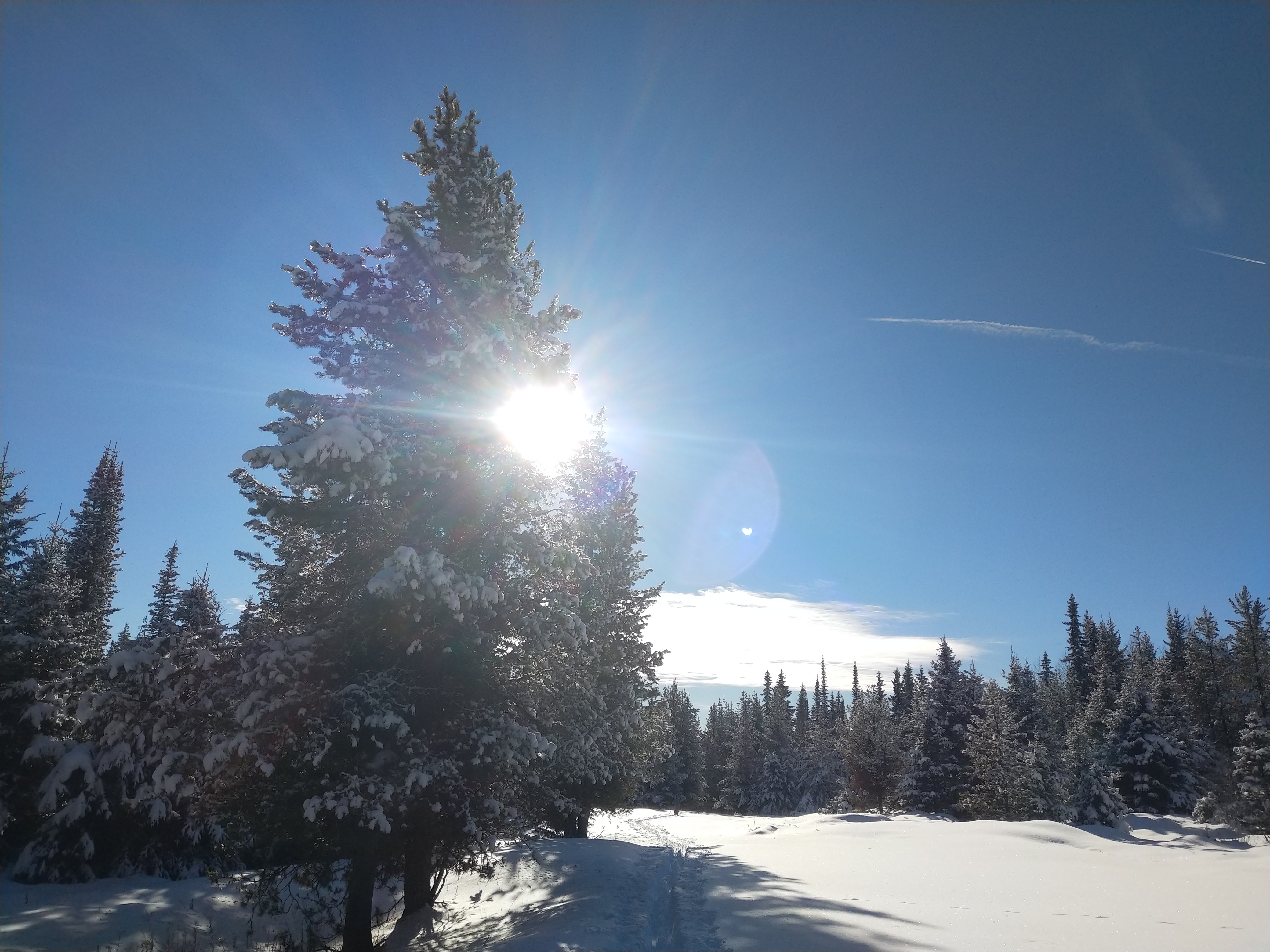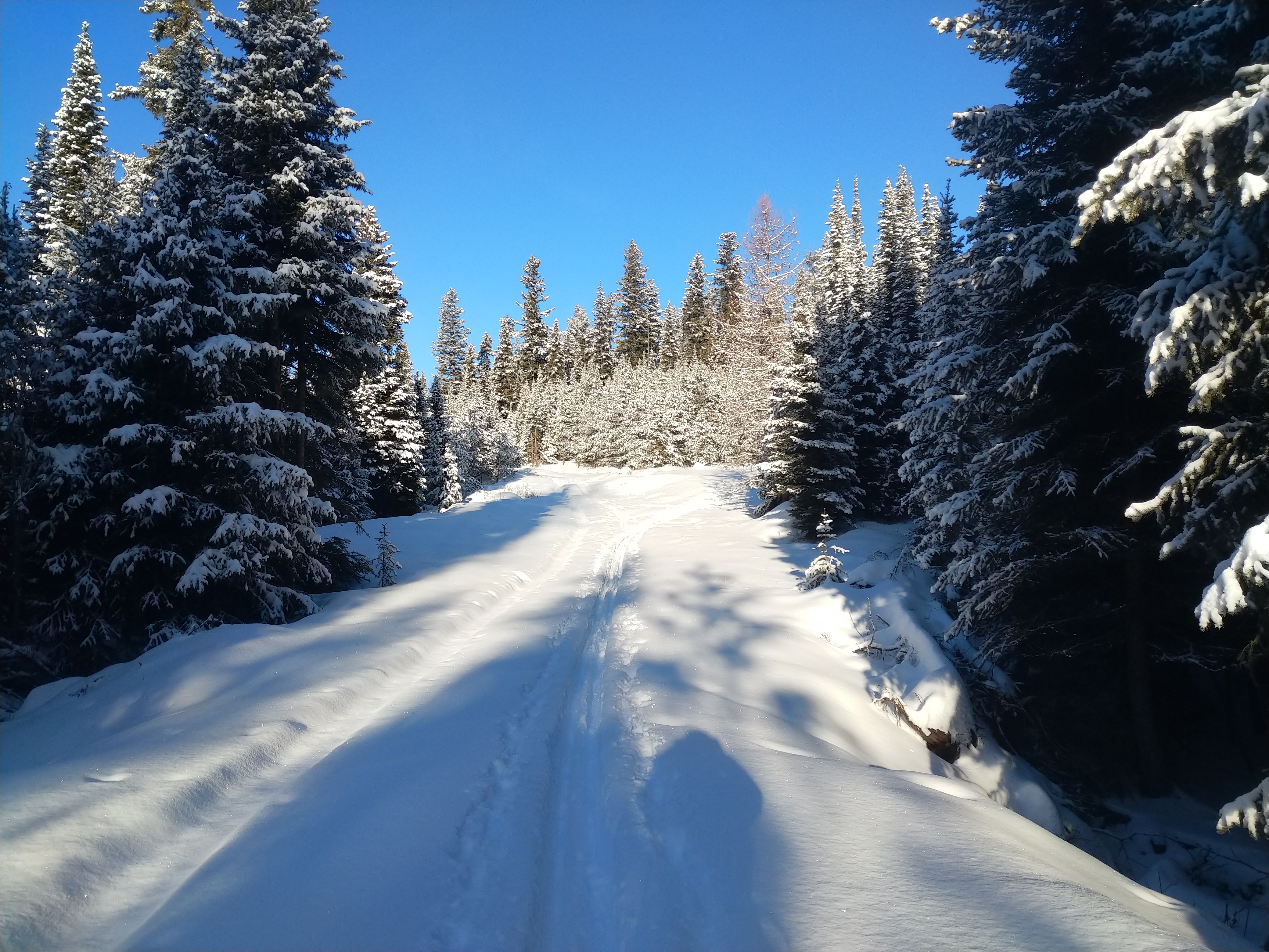 From this point on the temp had risen to +2 and the snow got sticky were the track was in the sun. Life on the snow sucks when the snow sticks to your skies. One reason why I prefer -5 to -10 snow is dry never sticks to you or your skies.