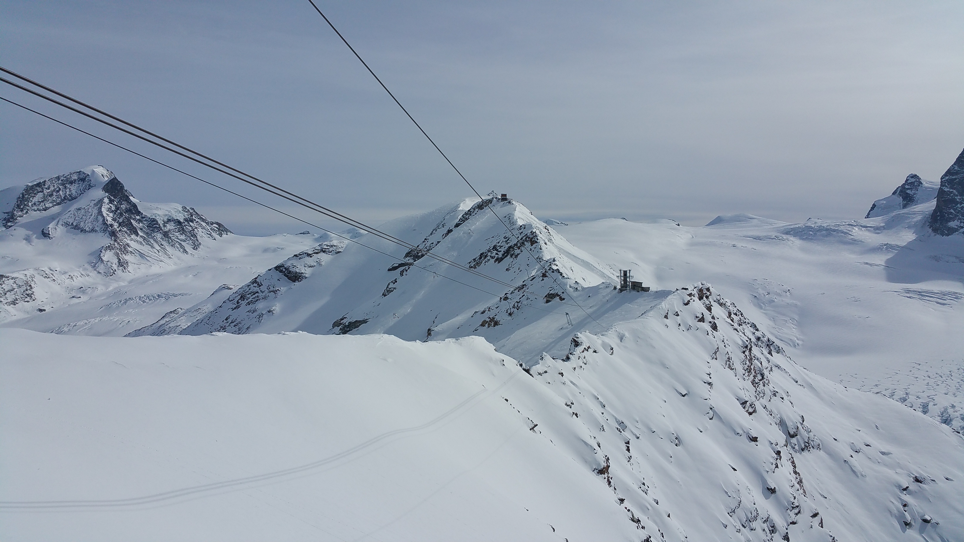 Rote Nase Cable Car Zermatttommysteem (25)in #skiing • 8 years ago Amazing view of Rote Nase cable car and the Triftji slopes in Zermatt. Great for mogul skiing! #zermatt #snow #mountains #piste