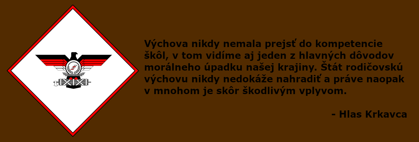 Výchova nikdy nemala prejsť do kompetencie škôl, v tom vidíme aj jeden z hlavných dôvodov morálneho úpadku našej krajiny. Štát rodičovskú výchovu nikdy nedokáže nahradiť a práve naopak v mnohom je skôr škodlivým vplyvom.