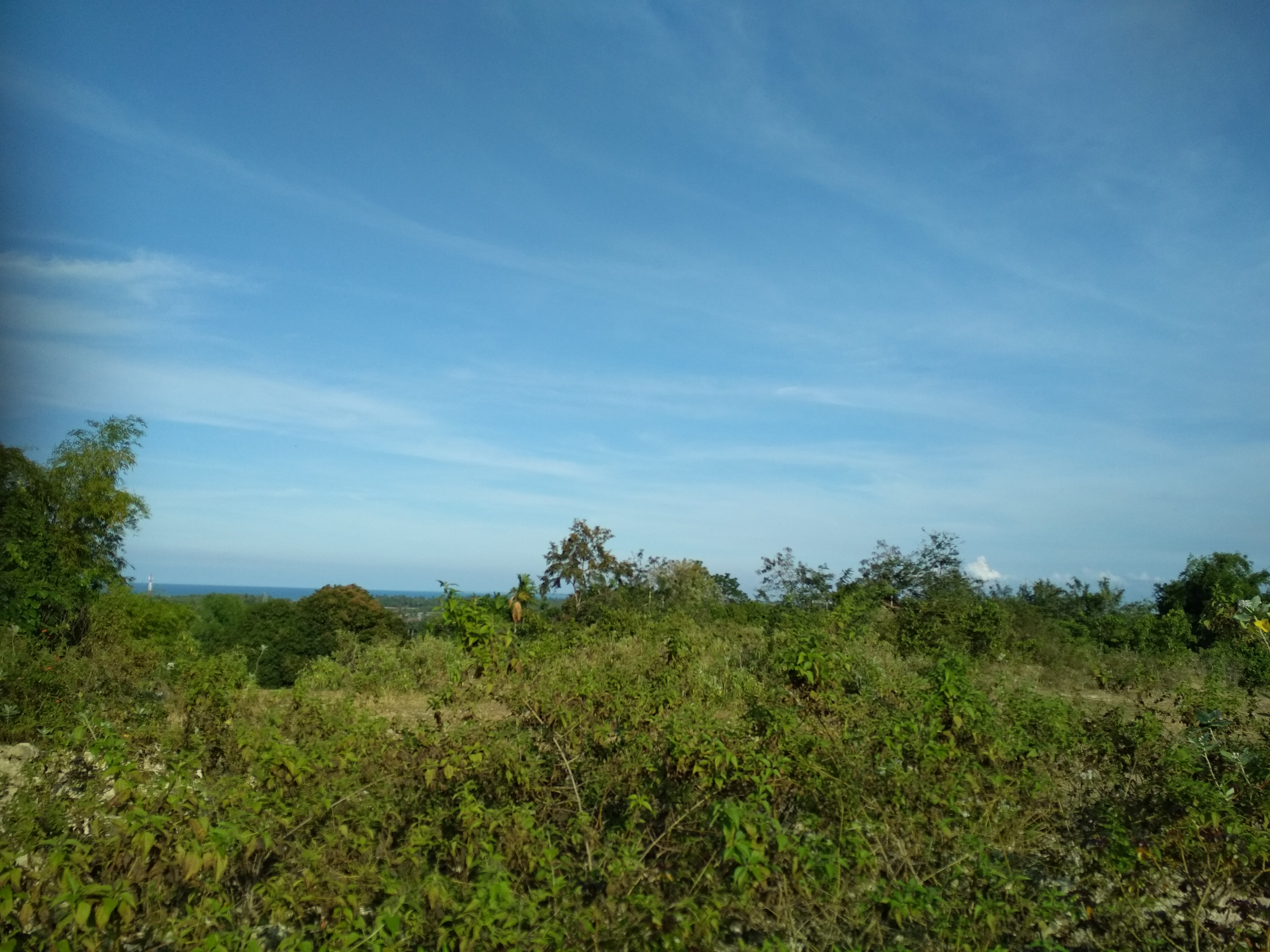 Akan tetapi ada yang bisa dinikmati dari panasnya udara dan cuaca hari ini. Yaitu langit biru yang indah dan bebas dari awan yang menghalangi. Walaupun ada sedikit kumpulan awan yang menghiasi langit biru di sebelah utara.