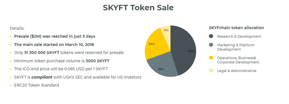 SKYFCHAIN gathering fund by held ICO. the fund that collected during ICO mostly allocated to several sections.