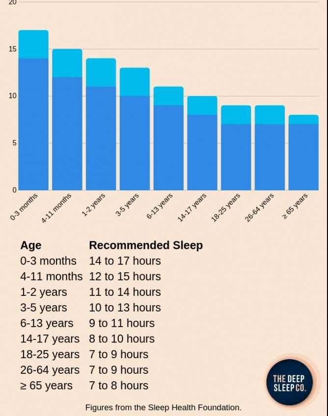 Take a look at the guide below to see how much sleep your child should be getting. Remember that individuals vary a lot, so if you feel your child needs more or less sleep than the chart says then trust your gut.