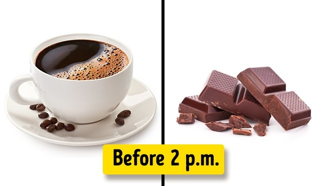 It’s no secret that caffeine prevents you from easily falling asleep. Don’t forget that it’s found not only in coffee but in tea, chocolate, and some other products as well.