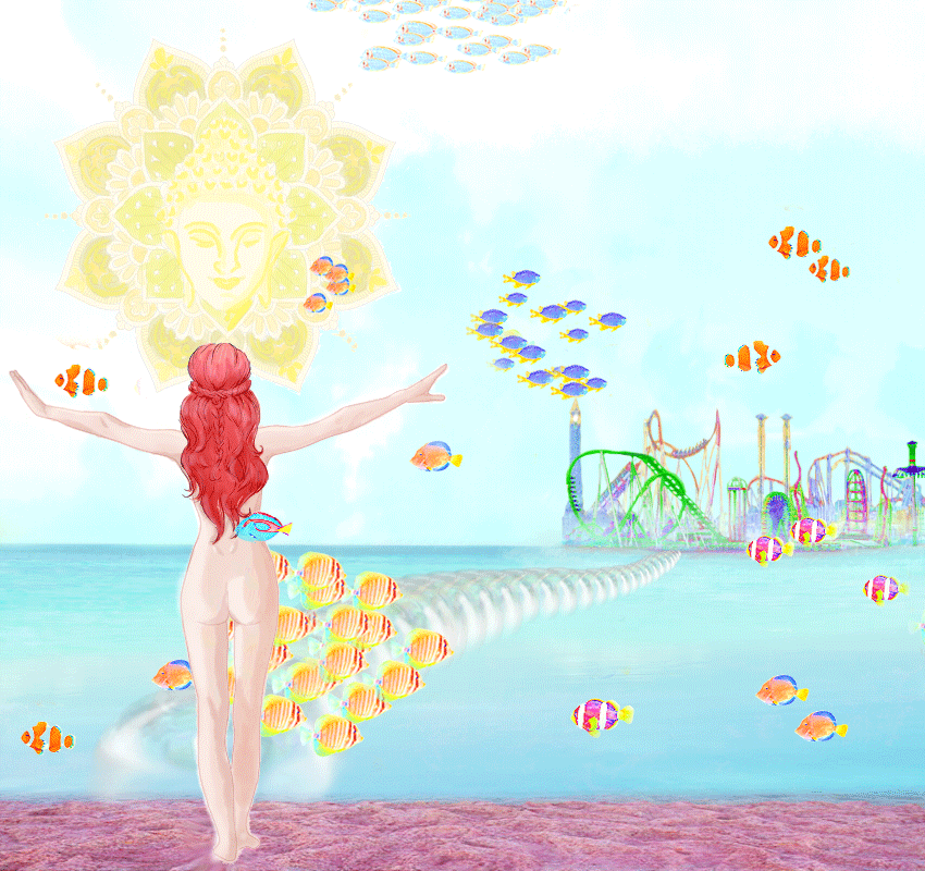 I made the illustration in sai tools, by means of several layers of lines. draw, the addition of color was by means of the marker and the brush with watercolor and rough motif. The gif was made by means of photoshop, I drew the fish by means of the brush and added filters.